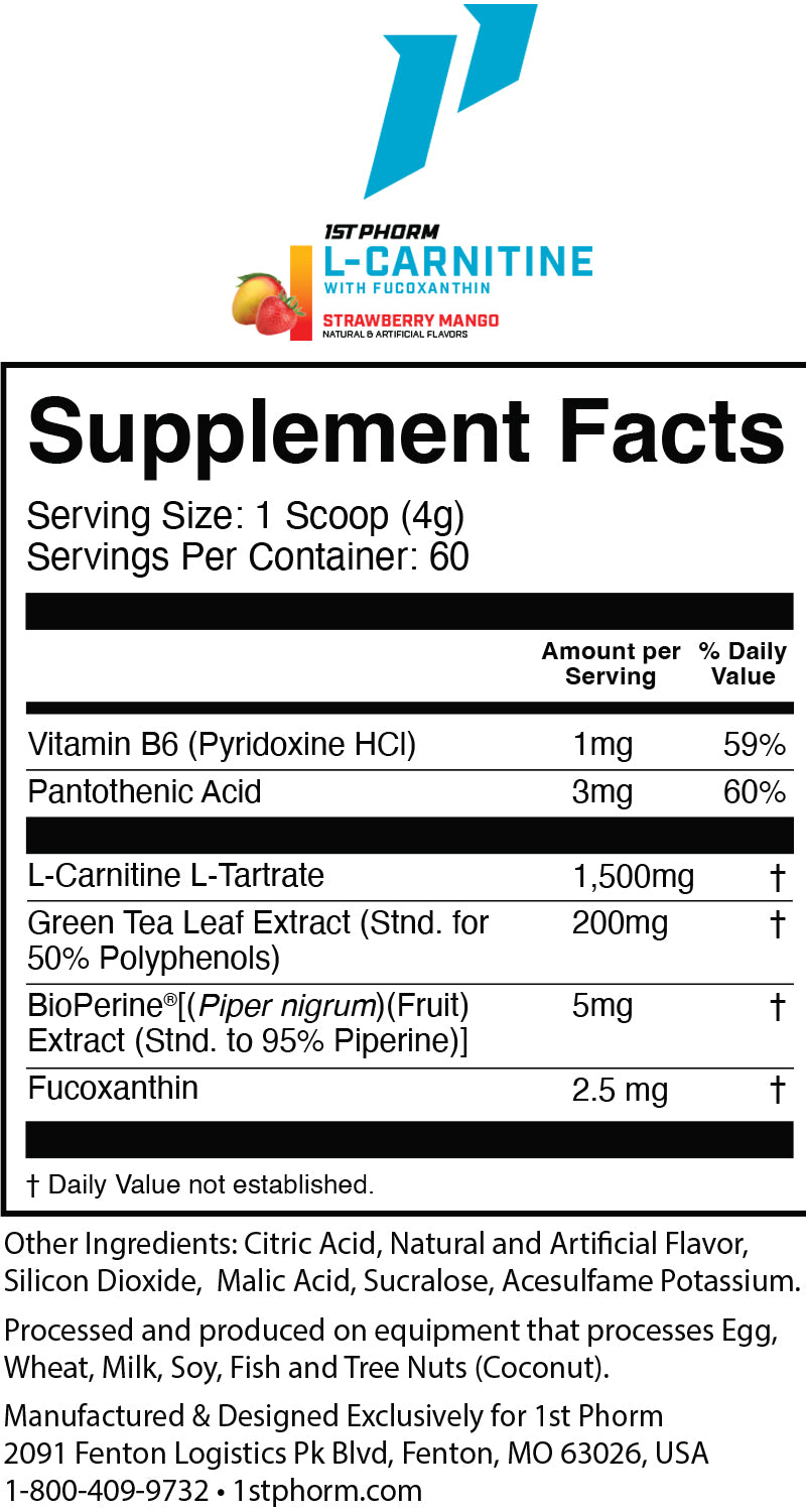 Make Informed Decisions About 1st Phorm L-Carnitine with Fucoxanthin with Comprehensive Nutritional Information.