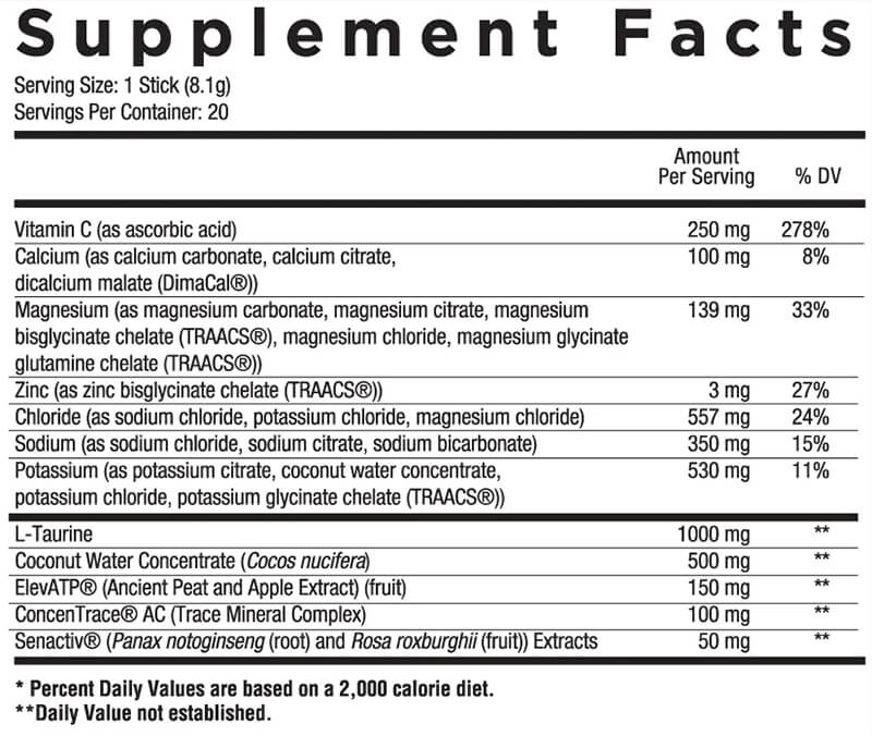 But that's not all, Core Hydrate goes above and beyond with additional key ingredients. With 530mg of Potassium sourced from potassium citrate, coconut water concentrate, and potassium chloride, along with 1000mg of L-Taurine, 500mg of Coconut Water Concentrate, and 150mg of ElevATP®, this formula is designed to keep you feeling refreshed and revitalised.