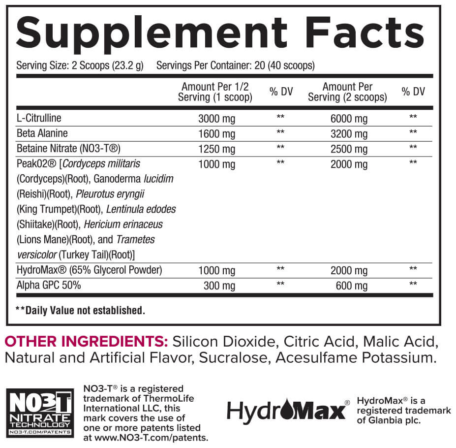Improved Performance and Endurance: Core Nutritionals Pump is formulated not just for looks but also for performance. Ingredients such as L-Citrulline, Betaine, and HydroMax® work together to enhance endurance, reduce fatigue, and increase overall training capacity.
