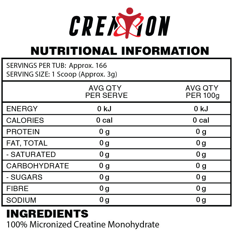 In true Creation Supplements fashion, Creatine HydraPure contains 100% active ingredients of the highest quality and purest pharmaceutical grade micronized creatine monohydrate with no added flavours, sweeteners or fillers to take your muscle building to a whole new level! Packed within a generous 500g container, offering an impressive 166 servings, this powerhouse supplement delivers unbeatable value for enthusiasts seeking peak performance enhancement.