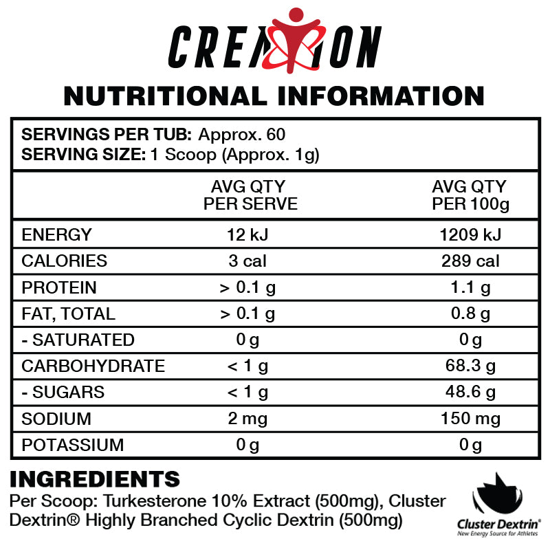 Paired with the 500mg Turkesterone dose is 500mg of Cluster Dextrin® Highly Branched Cyclic Dextrin. The 1:1 ratio of Turkesterone to Cluster Dextrin® Highly Branched Cyclic Dextrin enhances bioavailability, ensuring optimal absorption of this dynamic combination.