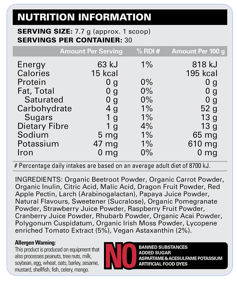 EHPLabs OxyReds harnesses the natural power of red pigmented fruits, vegetables, and exotic berries known for their high antioxidant properties. These ingredients work synergistically to combat oxidative stress, support immune function, and promote healthy skin. Additionally, the inclusion of dietary fibre aids in digestion and helps maintain a healthy gut microbiome, essential for overall health.