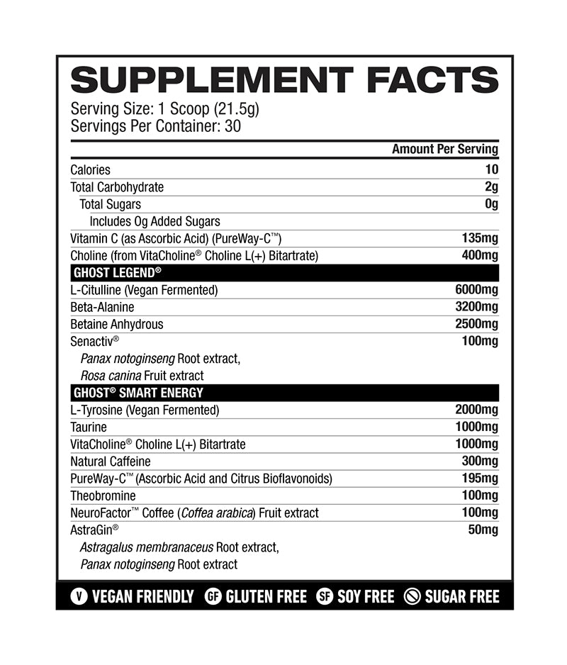 Ghost Legend V4 is more than a formula; it’s your backstage pass to epic workouts and legendary moments. With a perfectly balanced blend of focus enhancing nootropics, muscle pumping ingredients, and clean, natural energy, this pre-workout fuels your journey like no other. Whether you’re chasing PRs, smashing goals, or simply showing up as your best self, Ghost Legend V4 is your secret weapon.