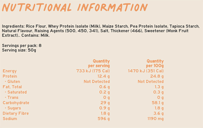 In addition to their high protein content, these pancakes also offer 29g of carbs and only 0.6g of fat per 50g serving, making them a balanced choice for those seeking to fuel their day or refuel post-workout. Whether you're aiming for a lean physique or simply want a more nutritious breakfast option, these pancakes have you covered.