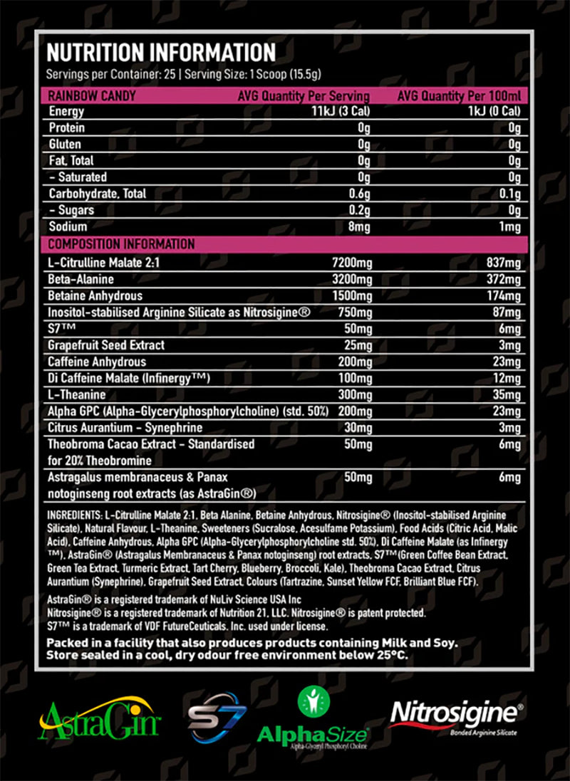 From patented AstraGin® for optimal nutrient absorption to the innovative blend of S7™ antioxidants, Hyperload is a next-level formula. Add Citrus Aurantium and Theobroma Cacao Extract, and you have the perfect fusion for enhanced athletic performance.