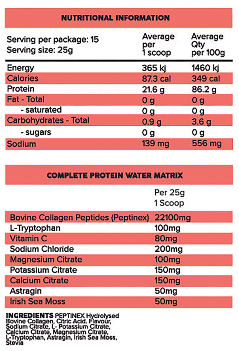 With over 22g of collagen peptides (Peptinex®) per scoop, this protein water is built to help support joint, skin, and gut health while delivering high quality protein that mixes clear and tastes even better. It's ideal for anyone who wants the benefits of collagen without the heavy texture of traditional protein shakes.