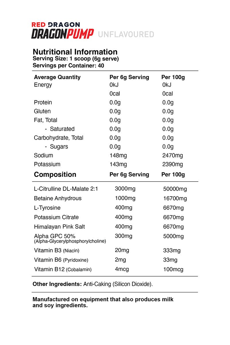 If you’re in the market for a caffeine free pre-workout to help take your training to the next level, give Red Dragon's Dragon Pump a go!