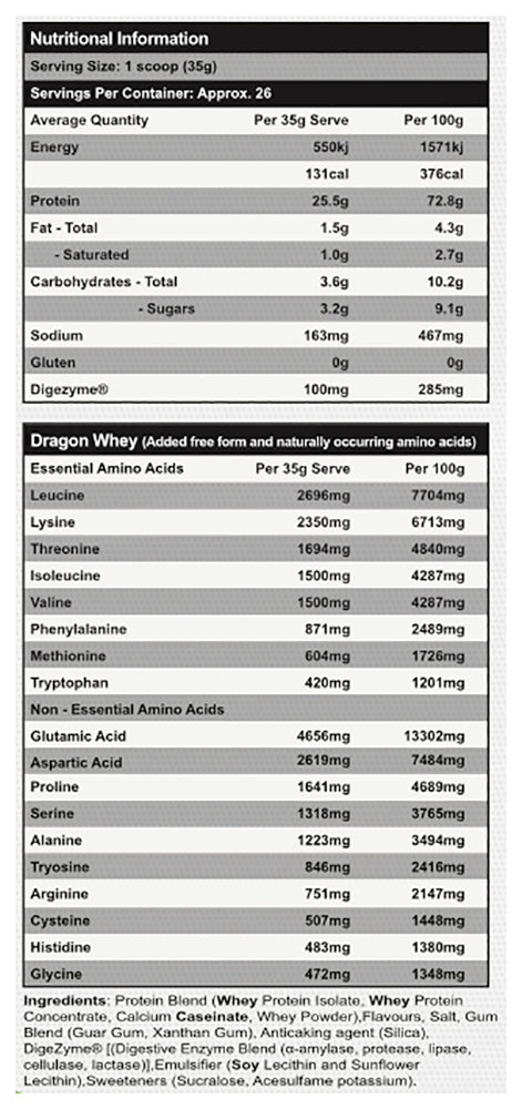 Make Informed Decisions About Red Dragon Nutritionals Dragon Whey with Comprehensive Nutritional Information.