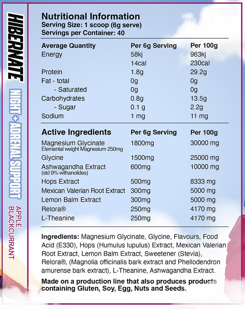 Hibernate is available in two delicious flavours including apple blackcurrant and strawberry pineapple. It is easy to use, simply mix one scoop with water in your MJ Shaker and enjoy before bed.