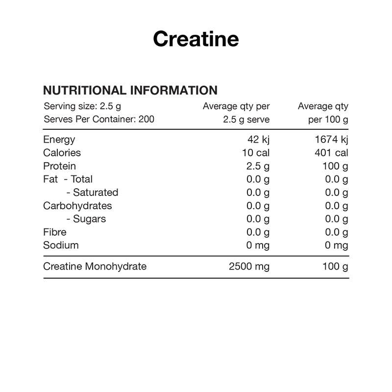 - Ingredient: 100% Pure Micronised Creatine Monohydrate
