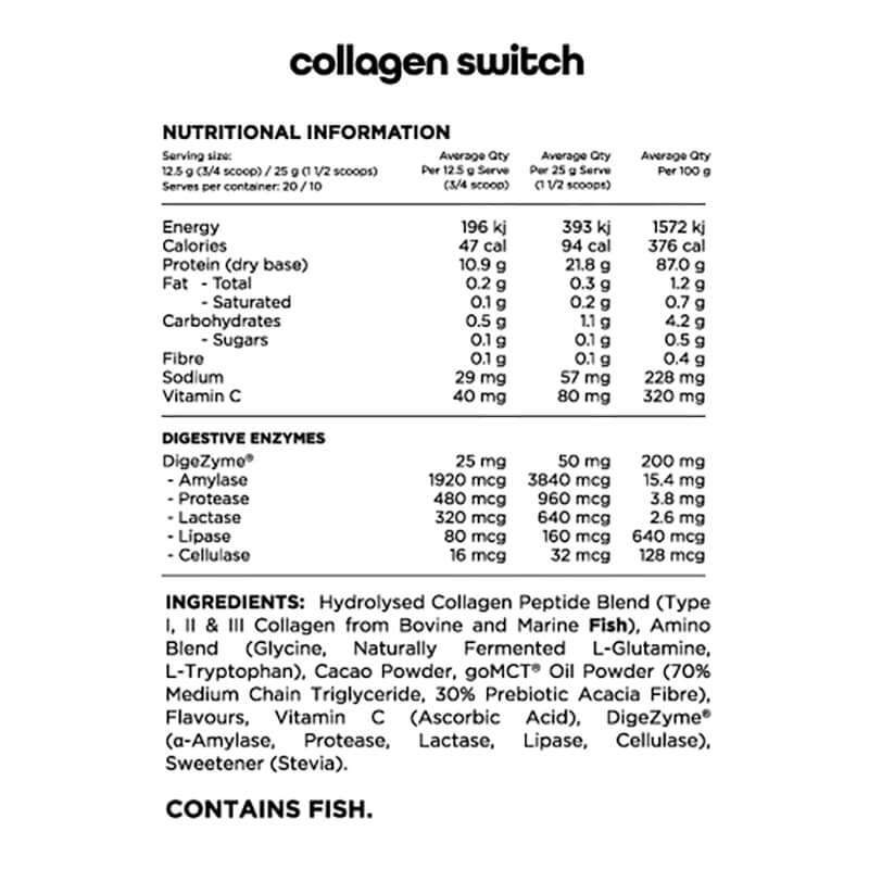 Make Informed Decisions About Switch Nutrition Collagen Switch with Comprehensive Nutritional Information.