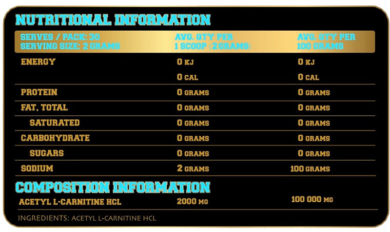 2000 mg pure Acetyl L-Carnitine HCL per serve