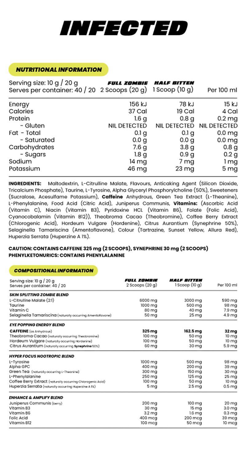 Packed with a unique blend of powerful ingredients, Infected is sure to give you the brains (and brawn) to power through even the toughest of workouts.